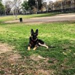 Carlson Bark Park is a well-kept off-leash dog park in Riverside, California, with a distinct little dog section, lush grass, and agility equipment. The park is surrounded by a fence.