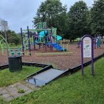 A softball/little league field and a multipurpose field are available at this park (check for availability). Playgrounds, a walking track, a brick plaza, a gazebo, and restrooms are all nice additions.